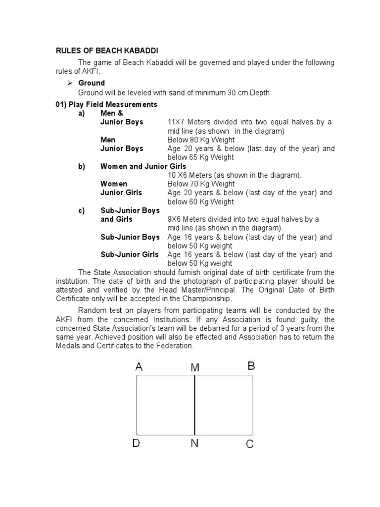 COURT DIMENSIONS& RULES AND REGULATIONS OF KABADDI
